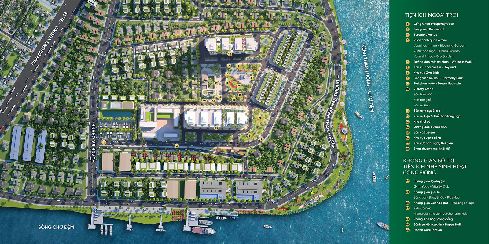 Góc nhìn toàn cảnh dự án Conic Boulevard từ sông Chợ Đệm