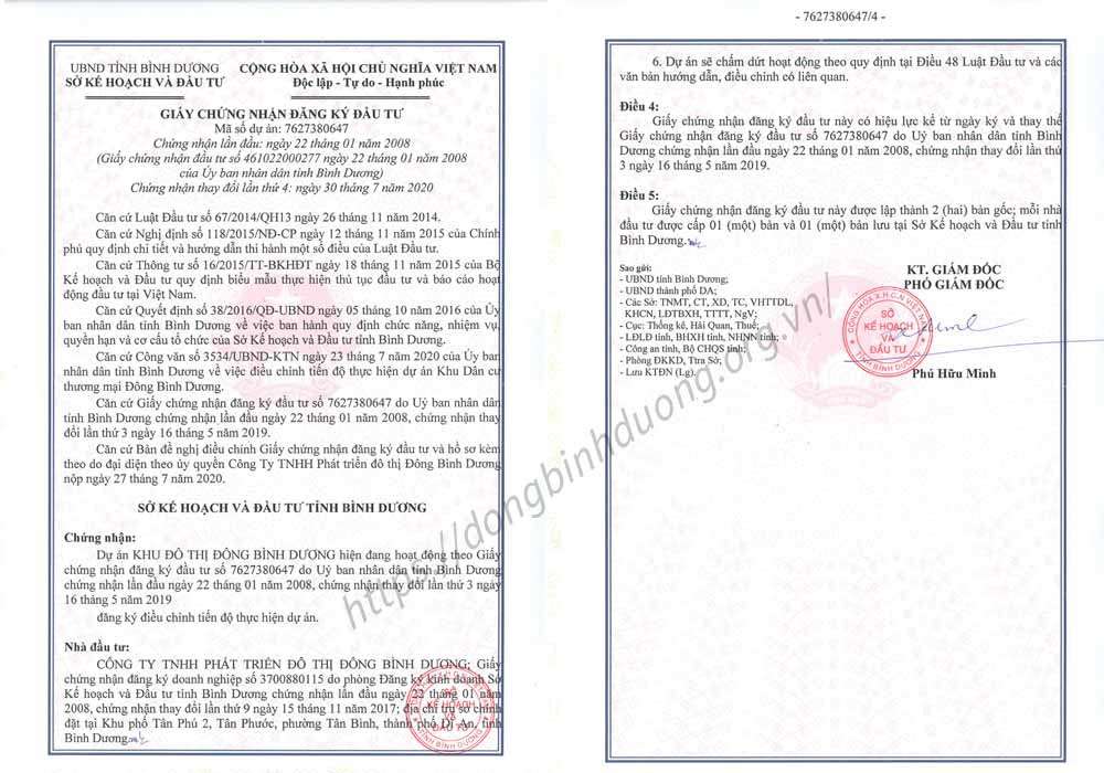 Chứng nhận đầu tư cho dự án khu đô thị Đông Bình Dương 2022Chứng nhận đầu tư cho dự án khu đô thị Đông Bình Dương 2022