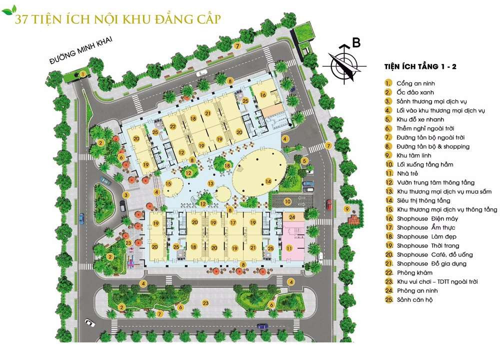 Bố trí hệ thống tiện ích dự án Green Pearl Minh Khai tầng 1 và 2