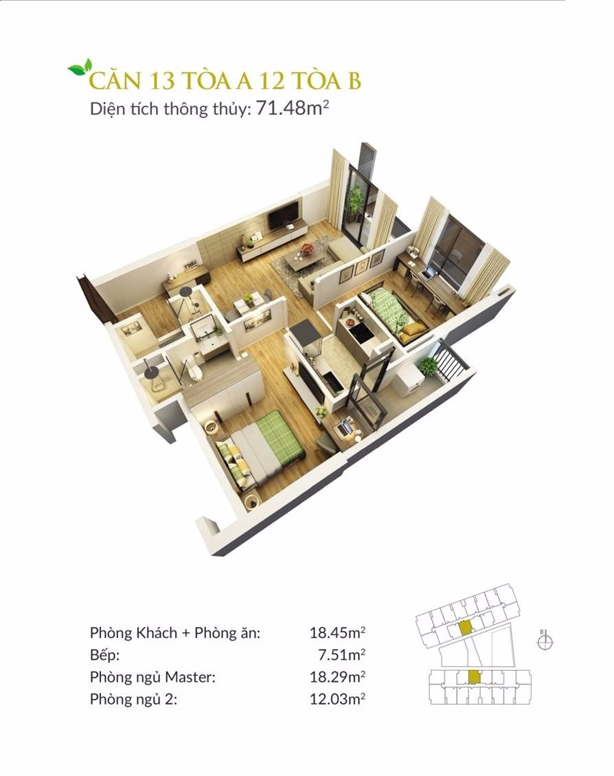 - Căn hộ 2 phòng ngủ có diện tích từ 71.48 đến 74.21 mét vuông, lý tưởng cho các gia đình nhỏ hoặc cá nhân.