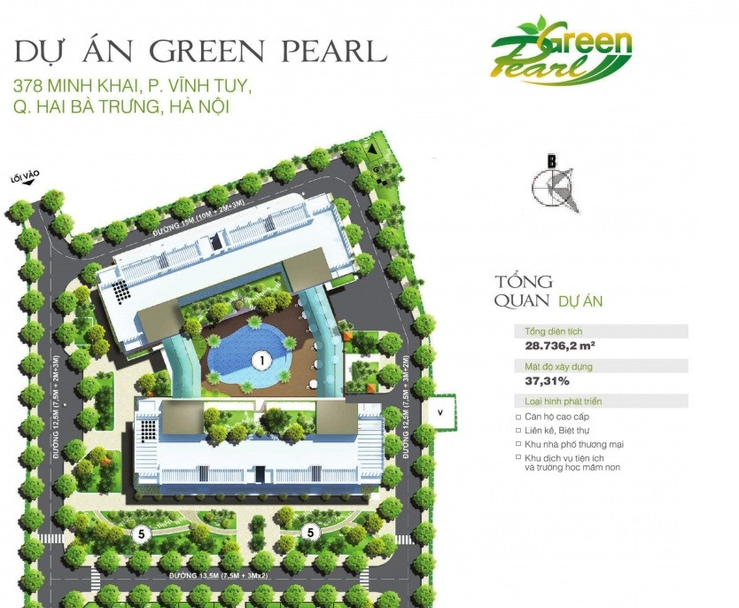 Mặt bằng tổng thể hai tòa chung cư Green Pearl Minh Khai