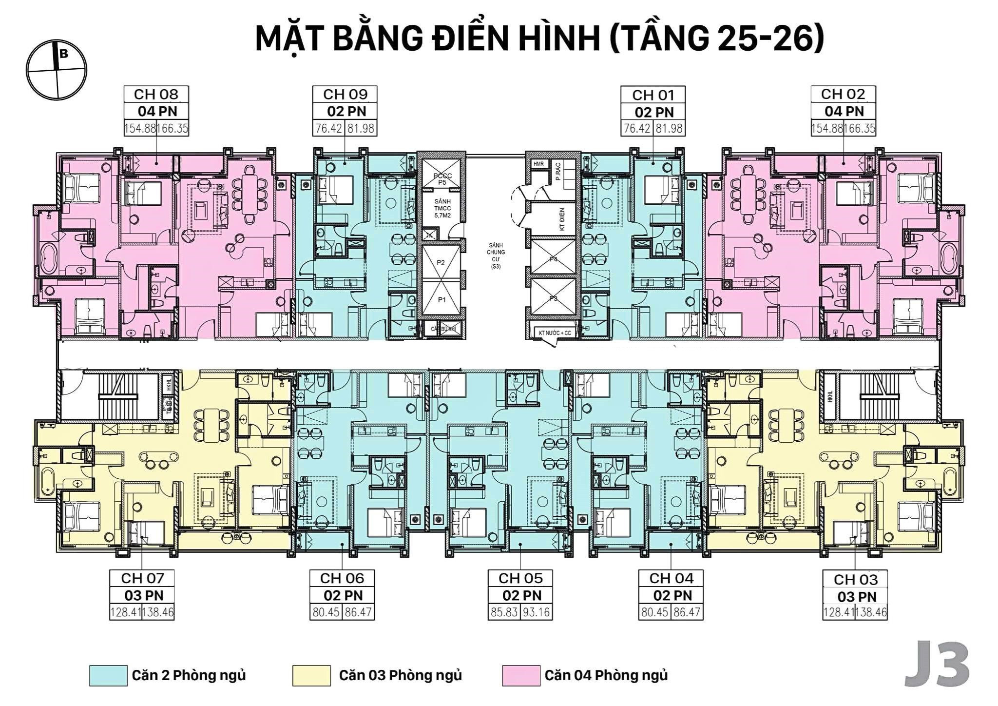 Sơ đồ mặt bằng chi tiết tòa J3 dự án Jade Square tầng 25-26