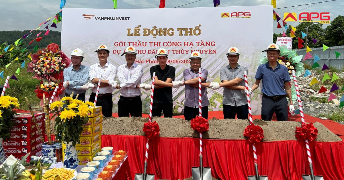 Ngày 28 tháng 05 năm 2024, tại Xã Thủy Đường và Xã Hòa Bình, Huyện Thủy Nguyên, Tp. Hải Phòng, đã diễn ra Lễ Động Thổ thi công gói thầu Hạ tầng cho dự án khu đô thị Vlasta Thủy Nguyên. Buổi lễ này đánh dấu sự khởi đầu chính thức cho công tác xây dựng, với sự tham dự của đại diện ban lãnh đạo từ hai công ty lớn: An Phú Gia Construction (APGCONS) và Văn Phú Invest, cùng đông đảo quý khách hàng và nhà đầu tư đang quan tâm đến bất động sản Thủy Nguyên.