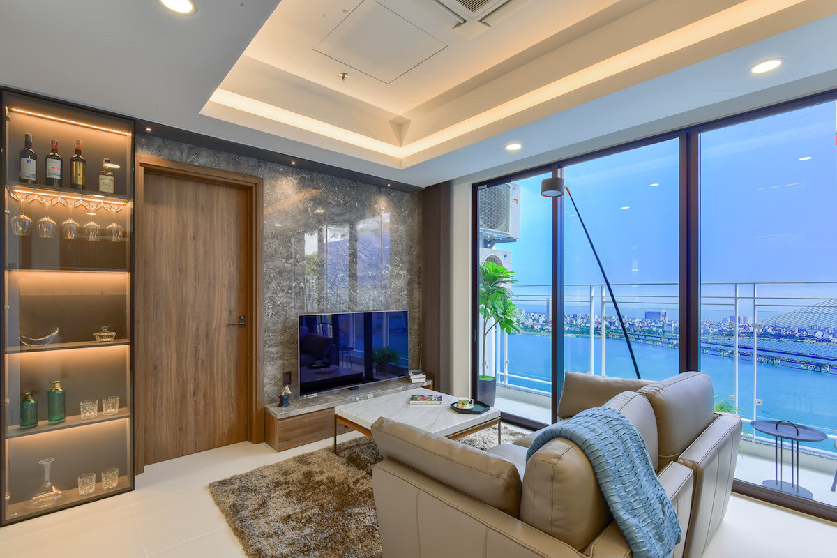 Thiết kế nội thất phòng khách sang trọng của căn hộ mẫu tại dự án Landmark Đà Nẵng.