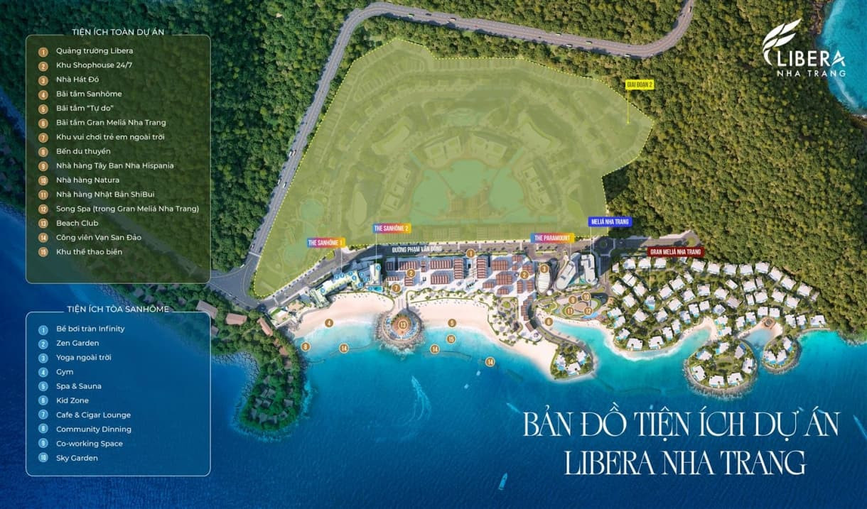 Bản đồ tổng thể các tiện ích đa dạng của dự án Libera Nha Trang KDI, thể hiện quy hoạch đồng bộ.
