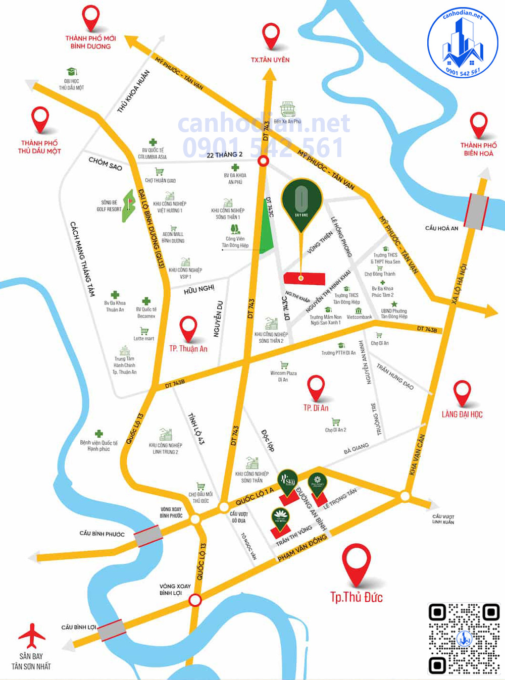 Bản đồ vị trí chiến lược của dự án Phú Đông SkyOne canhodian.net
