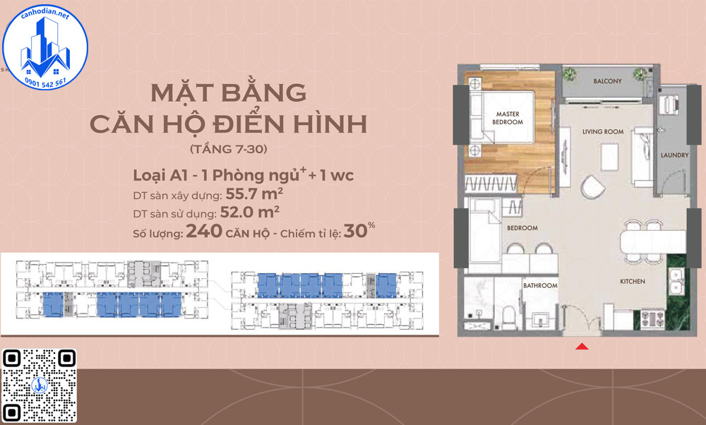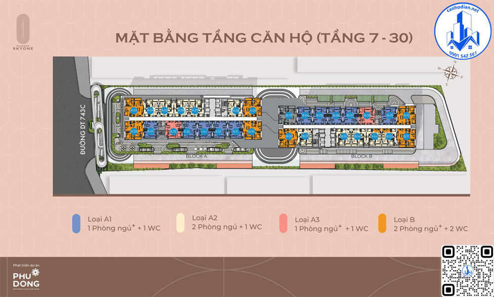 Mặt bằng tầng điển hình từ tầng 7-30 của dự án Phú Đông SkyOne canhodian.net