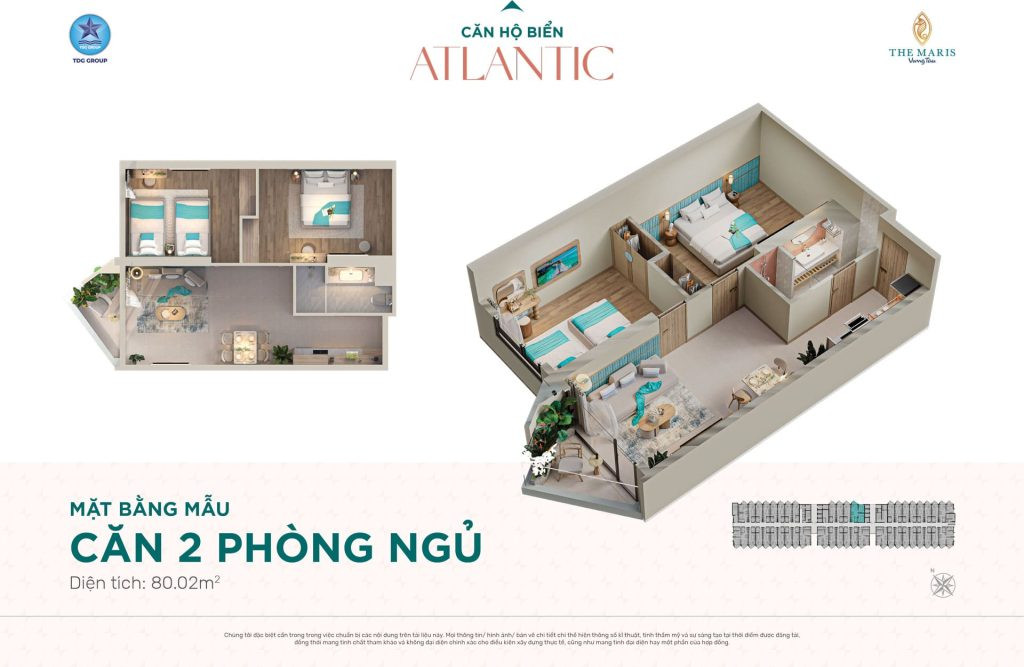 Layout căn hộ 2 phòng ngủ diện tích 80,02m2, không gian thoáng đãng tại Tháp Atlantic The MarisLayout căn hộ 2 phòng ngủ diện tích 80,02m2, không gian thoáng đãng tại Tháp Atlantic The Maris