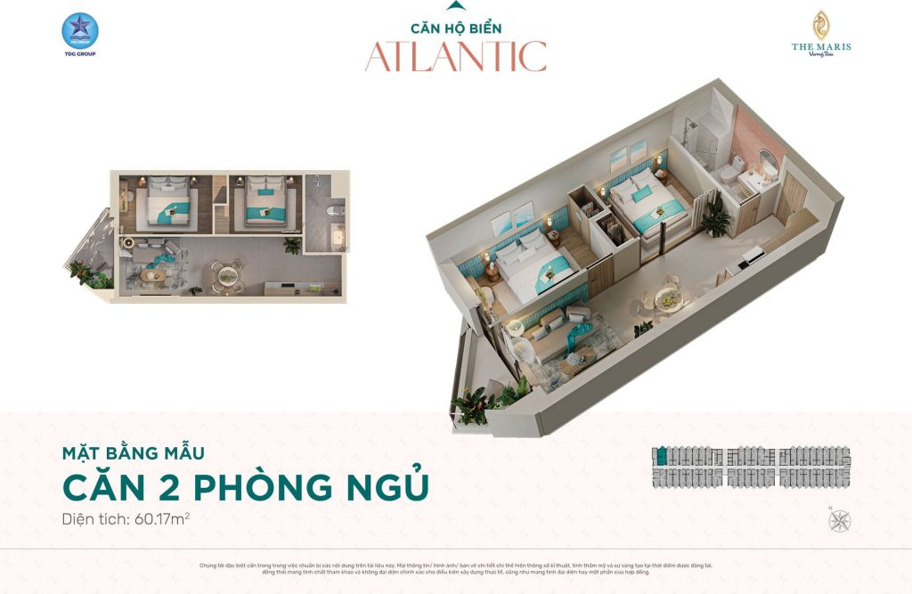 Layout thiết kế căn hộ 2 phòng ngủ diện tích 60,17m2 tại Tháp Atlantic The MarisLayout thiết kế căn hộ 2 phòng ngủ diện tích 60,17m2 tại Tháp Atlantic The Maris