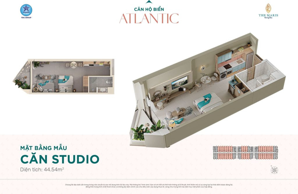 Layout thiết kế căn hộ studio diện tích 44,54m2 tại Tháp Atlantic The MarisLayout thiết kế căn hộ studio diện tích 44,54m2 tại Tháp Atlantic The Maris