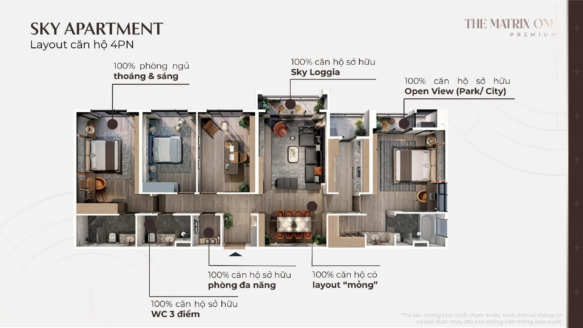 Layout căn hộ 4 phòng ngủ tại The Matrix One giai đoạn 2 với tầm nhìn thoáng đãng