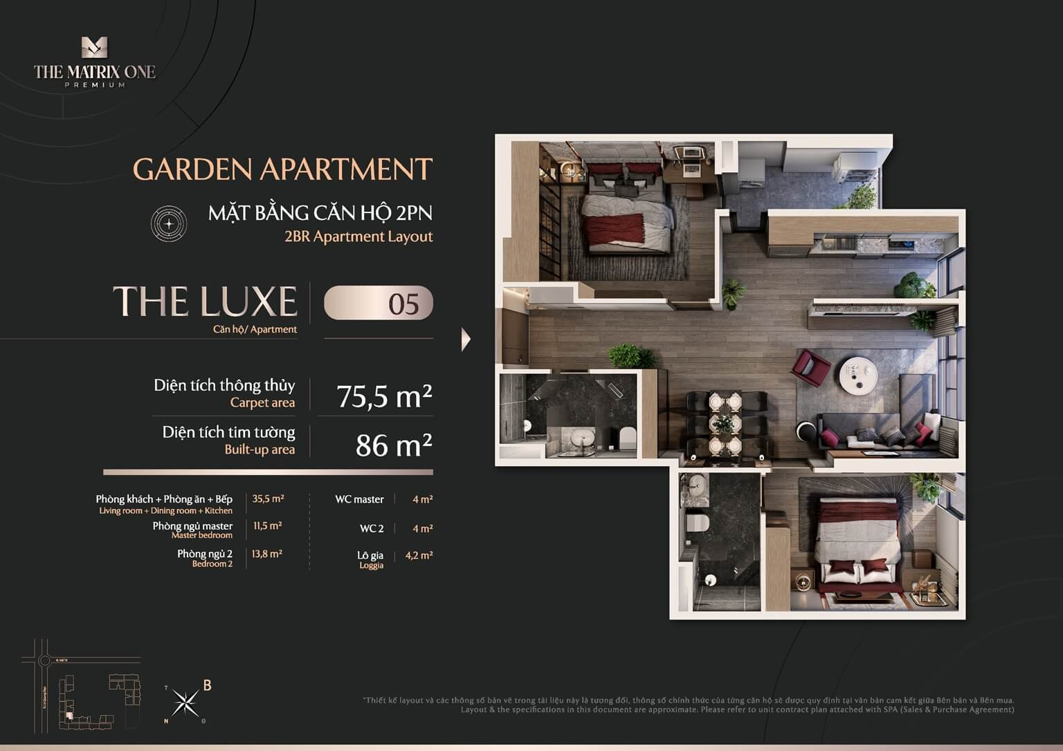 Thiết kế mặt bằng căn hộ Garden Apartment Luxe 06 thuộc dự án The Matrix One Premium