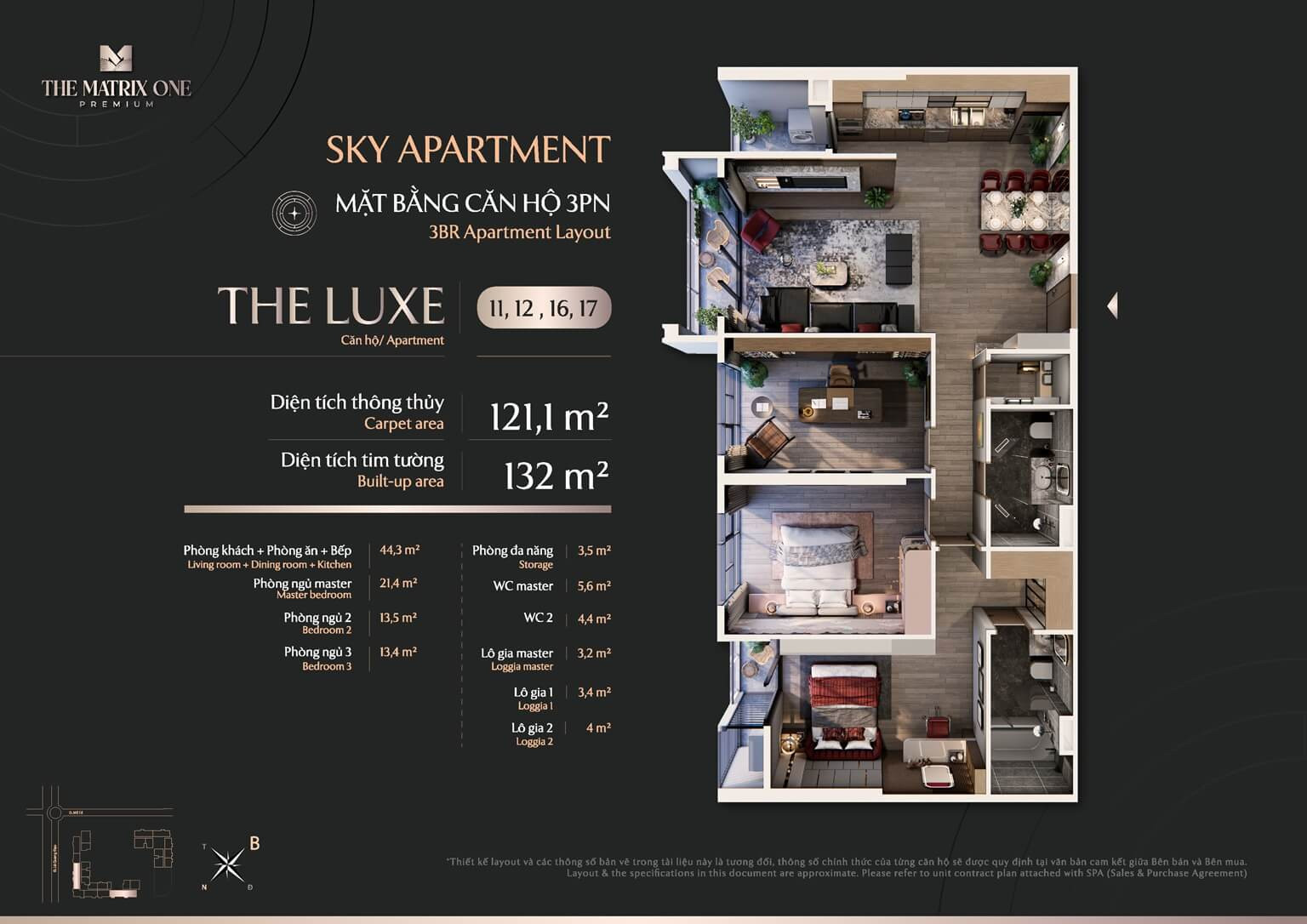 Mặt bằng chi tiết các căn hộ Luxe 11, 12, 16, 17 thuộc The Matrix One Premium