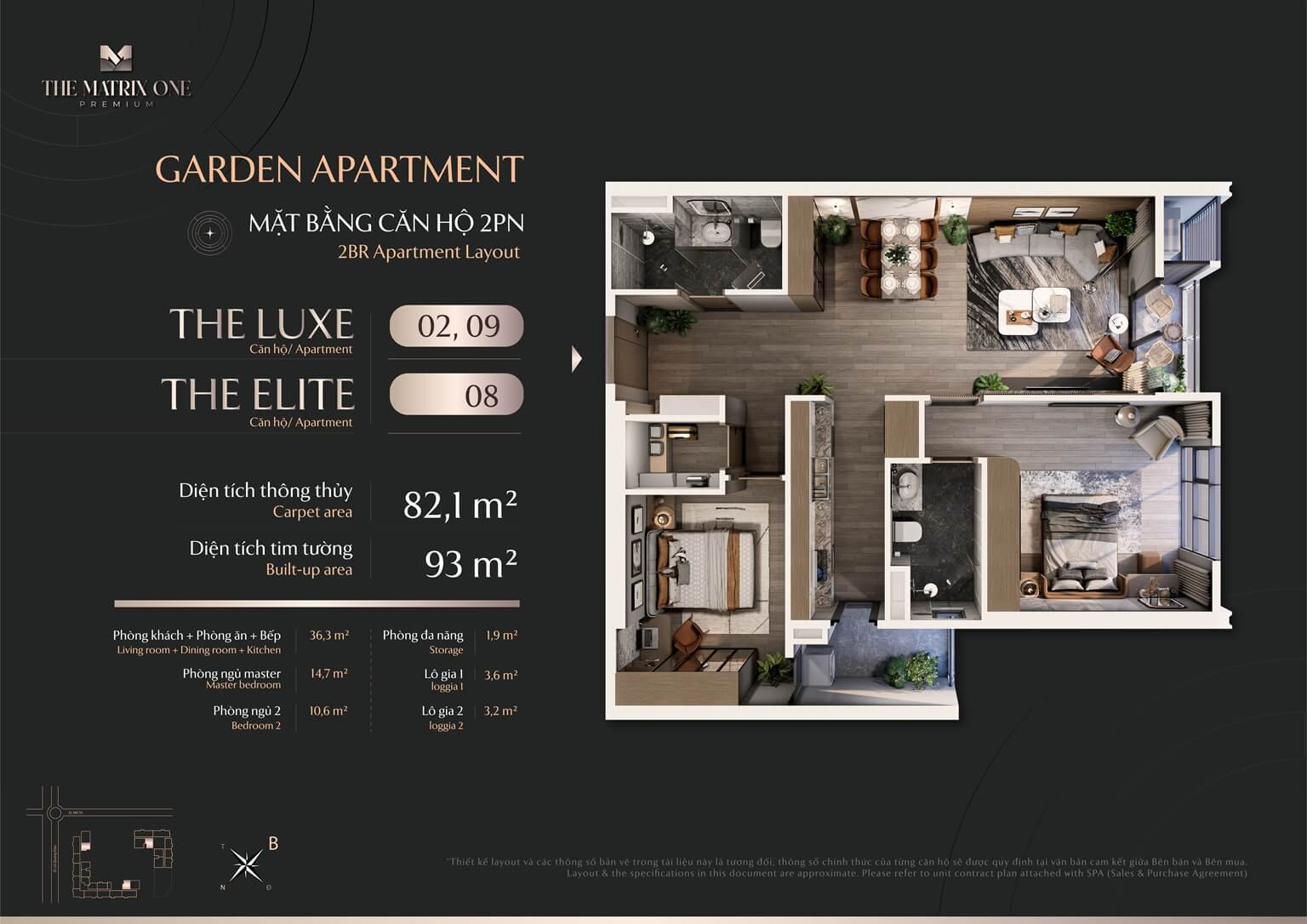 Thiết kế mặt bằng căn hộ Garden Apartment Luxe 02, 09 và Elite 08 tại The Matrix One giai đoạn 2