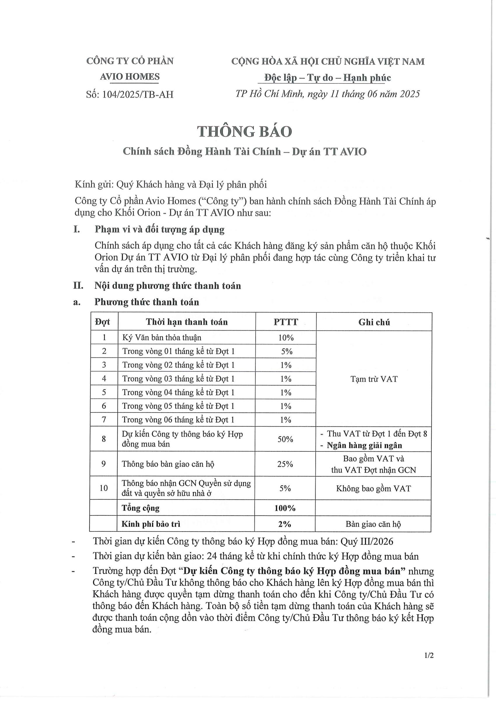 Phương Thức Thanh Toán Linh Hoạt Tại Dự án TT Avio