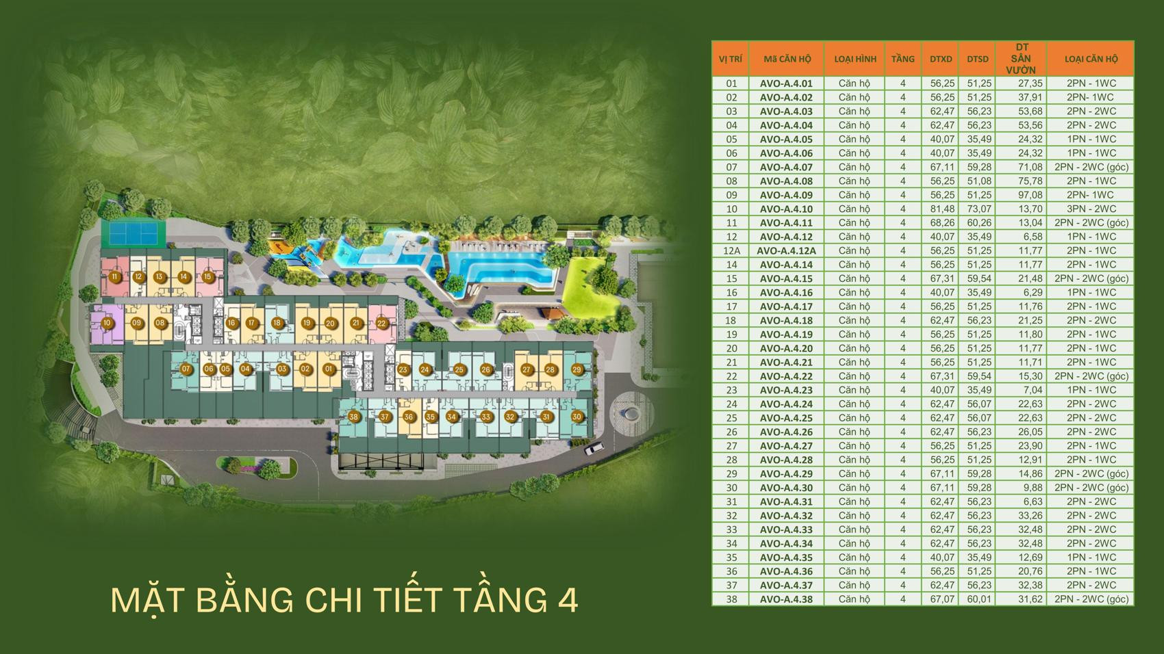 Mặt bằng tầng 4 của dự án TT Avio Dĩ An Bình Dương với căn hộ sân vườn