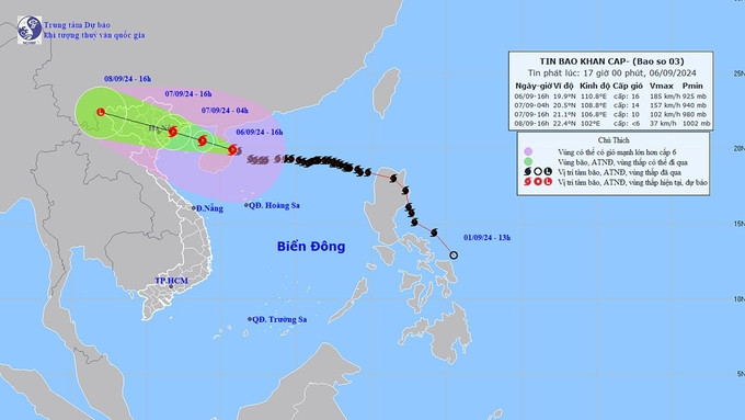 Vùng biển phía Tây Bắc của khu vực Bắc Biển Đông trong đêm 6/9 tiếp tục hứng chịu gió mạnh cấp 10-12, vùng gần tâm bão Yagi mạnh cấp 14-16, giật trên cấp 17, gây biển động dữ dội. Đây là mức cường độ gió cực kỳ nguy hiểm, đe dọa trực tiếp đến tàu thuyền và các hoạt động hàng hải. Đến ngày 7/9, cường độ gió sẽ giảm dần, nhưng vẫn ở mức cao.