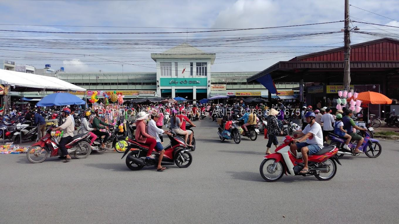 Chợ Gò Đen tấp nập tại Bến Lức, Long An, nơi cung cấp đa dạng sản phẩm.