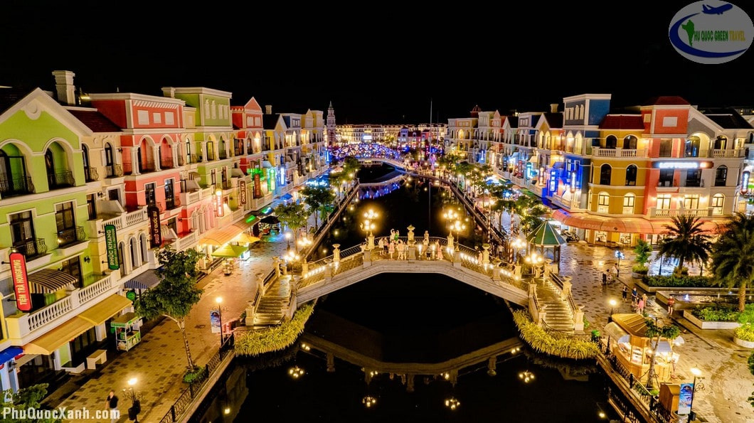 Một trong những biểu tượng nổi bật nhất của Grand World Phú Quốc chính là Dòng Sông Venice (Hồ Tình Yêu), lấy cảm hứng từ thành phố tình yêu lãng mạn của Ý. Con kênh nhân tạo này dài tới 400m và rộng 25m, với màu nước xanh ngọc bích đặc trưng. Hai bên bờ sông là những ngôi nhà kiến trúc cổ kính, được sơn phết nhiều màu sắc rực rỡ, gợi nhớ đến hòn đảo Burano nổi tiếng. Sự kết hợp giữa kiến trúc châu Âu và khung cảnh nên thơ tạo nên một không gian vô cùng ấn tượng và thu hút.
