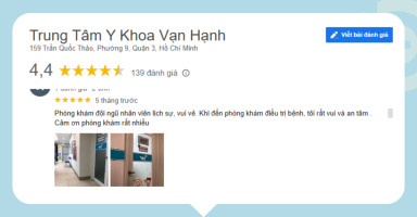 Trung tâm Y khoa Vạn Hạnh nằm tại 159 Trần Quốc Thảo, Phường 9, Quận 3, TP.HCM. Trung tâm hoạt động từ Thứ Hai đến Thứ Bảy, Sáng từ 7h30 – 12h và Chiều từ 13h30 – 17h, với mức giá khám là 300.000đ/lượt. Đây là một địa chỉ chuyên sâu về khám và điều trị các bệnh lý cơ xương khớp, thần kinh, cột sống, nổi bật với các phương pháp điều trị bảo tồn, hạn chế xâm lấn.