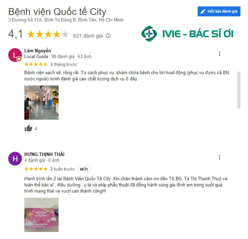 Đánh giá tích cực của khách hàng về dịch vụ khám bệnh tại Bệnh viện Quốc tế City
