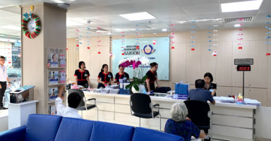 Quầy tiếp đón khách hàng khám sức khỏe tiền hôn nhân tại Phòng khám Olympus Gia Mỹ