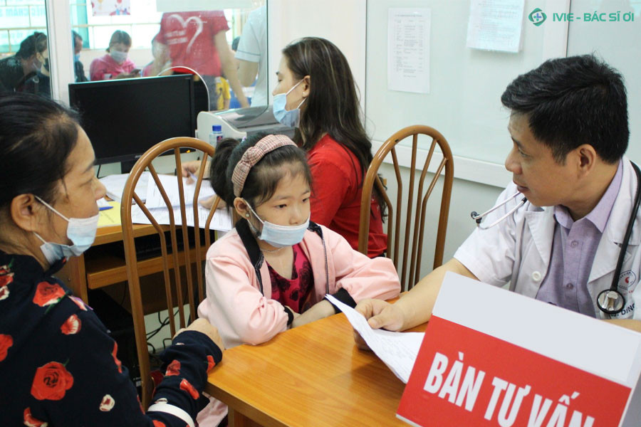 Bác sĩ Bệnh viện Tim Hà Nội đang thăm khám và tư vấn cho bệnh nhân tim mạch