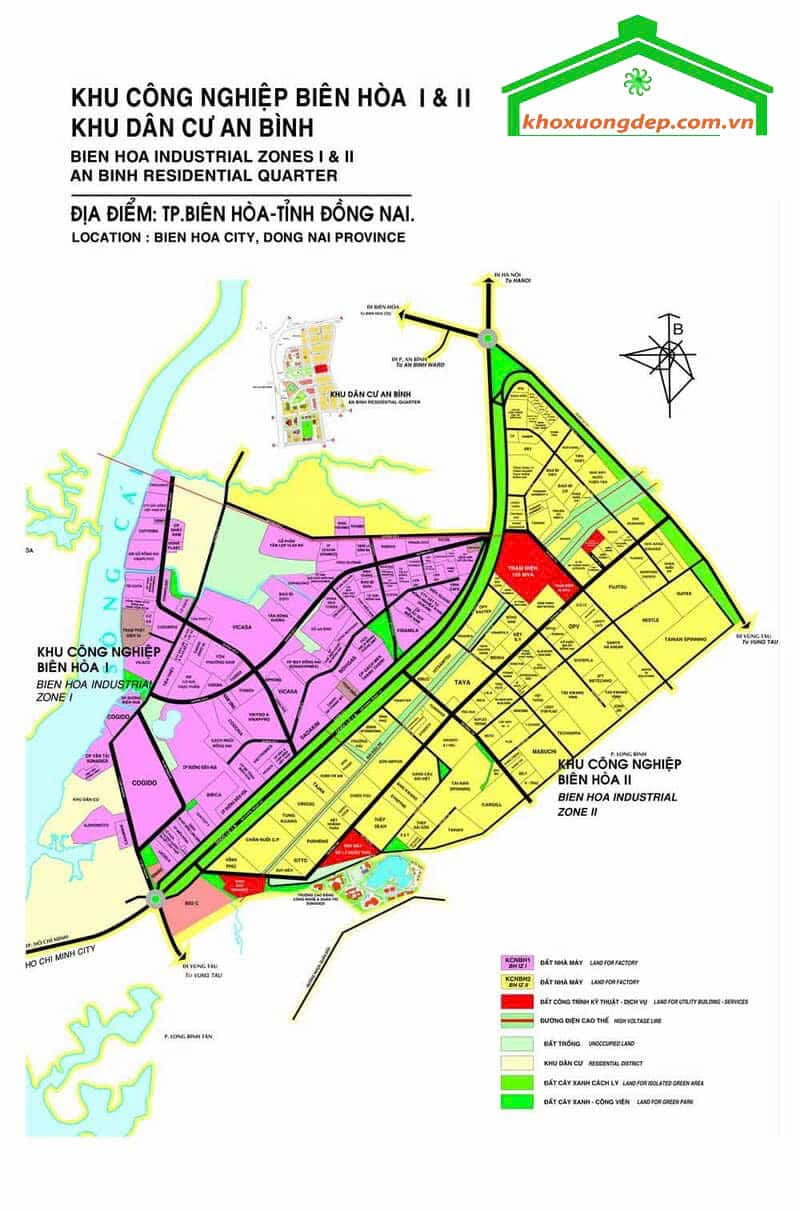 Bản đồ quy hoạch chi tiết khu công nghiệp Biên Hòa 2, thể hiện các phân khu chức năng