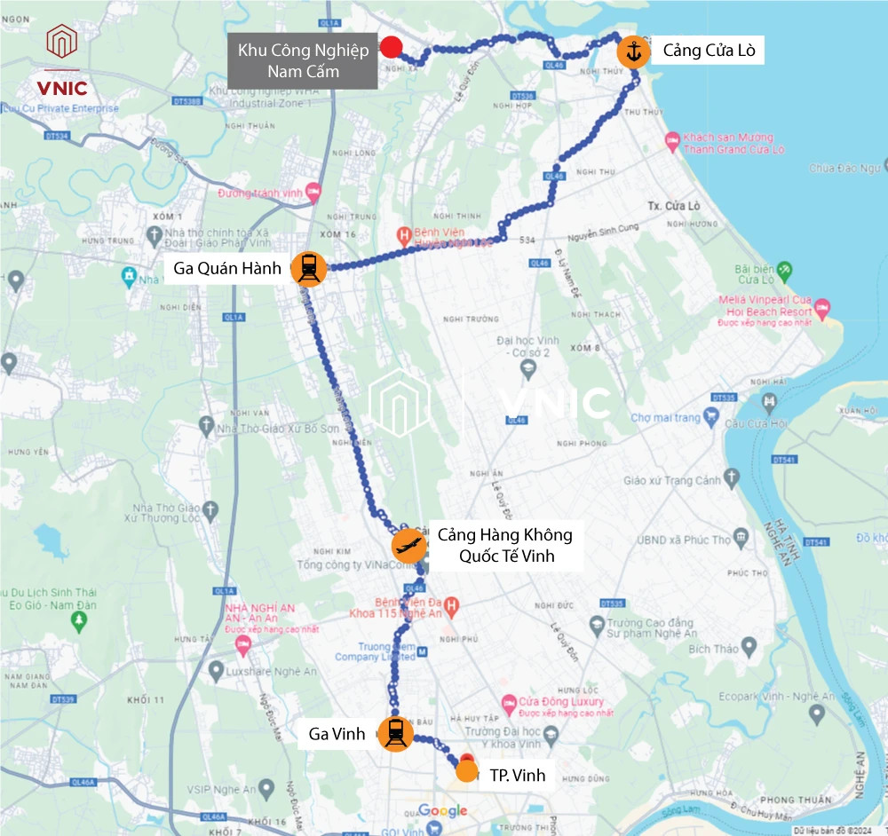 Khả năng kết nối giao thông của khu công nghiệp Nam Cấm là một điểm cộng lớn, giúp doanh nghiệp dễ dàng vận chuyển hàng hóa và nguyên vật liệu. Từ trung tâm TP Vinh, khu công nghiệp chỉ cách khoảng 18km, tương đương 20 phút di chuyển. Sân bay TP Vinh cũng chỉ cách 12km (khoảng 15 phút), tạo điều kiện thuận lợi cho việc di chuyển của các chuyên gia và kết nối vận tải hàng không.