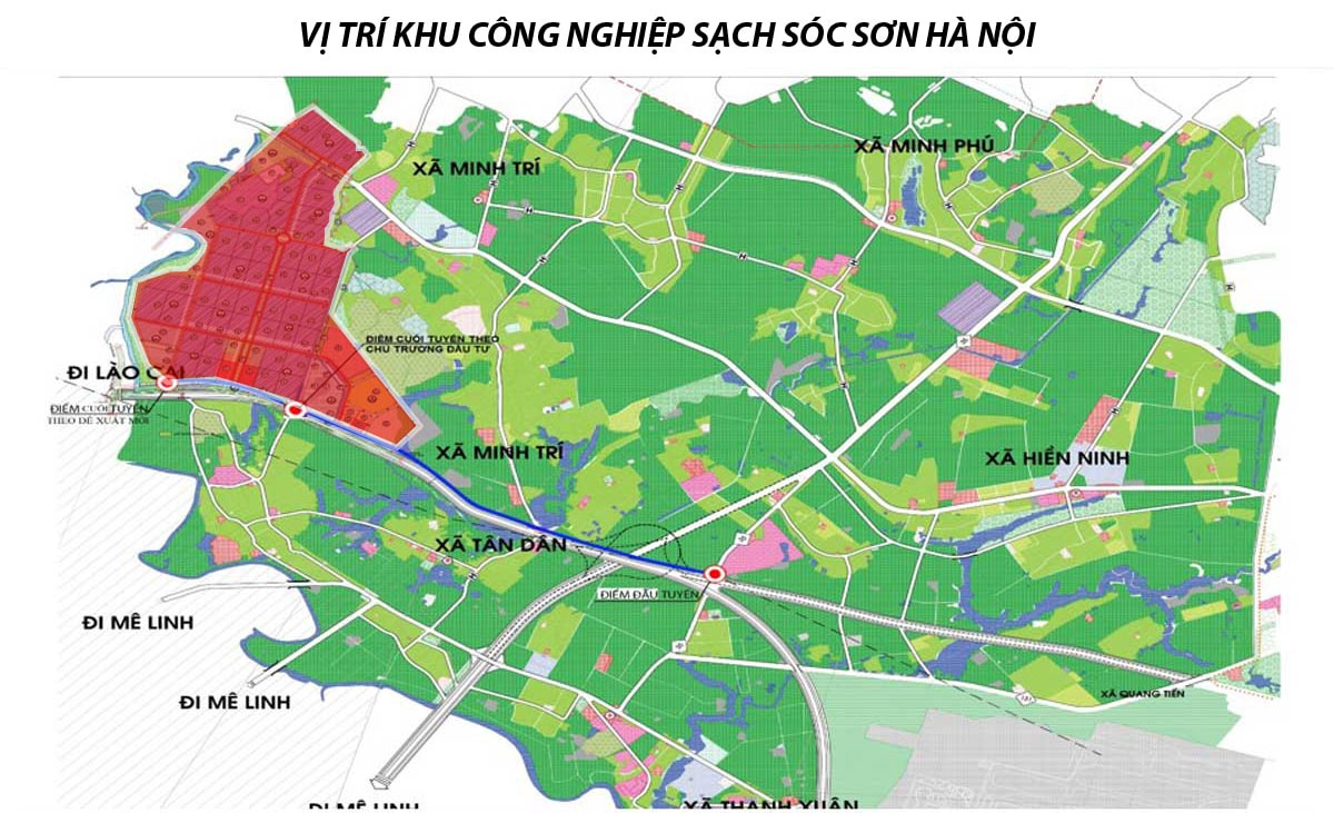 Sơ đồ vị trí Khu công nghiệp sạch Sóc Sơn và các tuyến giao thông trọng điểm