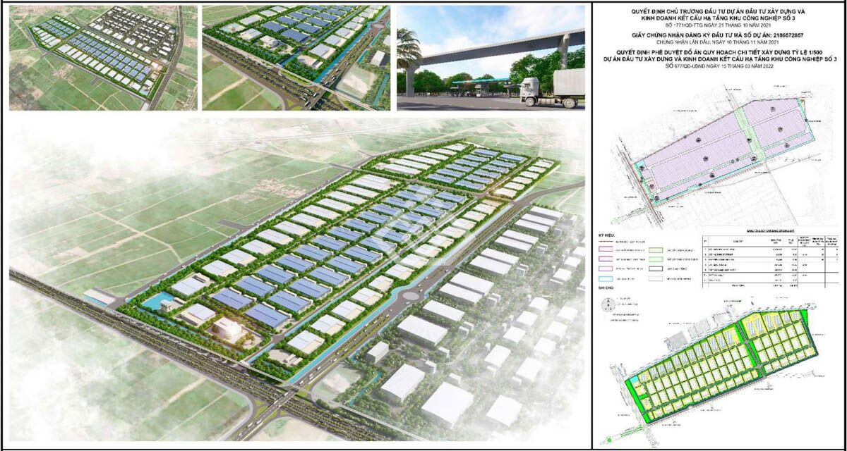 Dự án khu công nghiệp số 3 Hưng Yên được Thủ tướng Chính phủ phê duyệt chủ trương đầu tư vào ngày 20/10/2021, theo Quyết định số 1771/QĐ-TTg. Với tổng diện tích quy hoạch lên đến 159,71 ha, trong đó diện tích đất công nghiệp dành cho thuê là 115 ha, dự án này đã được xác định là một trong những động lực chính cho sự tăng trưởng của tỉnh. Thời hạn thuê đất kéo dài đến ngày 20/10/2071, mang lại sự ổn định và an tâm cho các nhà đầu tư dài hạn.