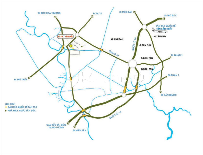 Bản đồ vị trí chiến lược của khu công nghiệp Tân Đức Long An trong khu vực kinh tế trọng điểm phía NamBản đồ vị trí chiến lược của khu công nghiệp Tân Đức Long An trong khu vực kinh tế trọng điểm phía Nam