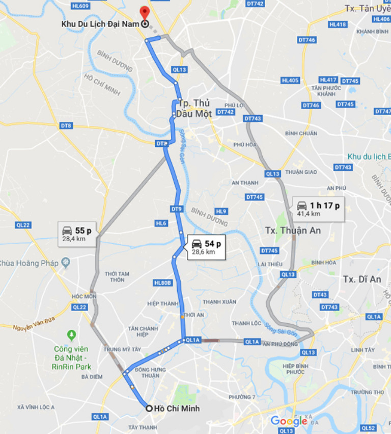 Tuyến đường từ TP. Hồ Chí Minh đến Khu Du Lịch Đại NamTuyến đường huyết mạch Quốc lộ 13 giúp việc di chuyển từ TP. Hồ Chí Minh đến khu du lịch Đại Nam trở nên thuận lợi, rút ngắn đáng kể khoảng cách địa lý.