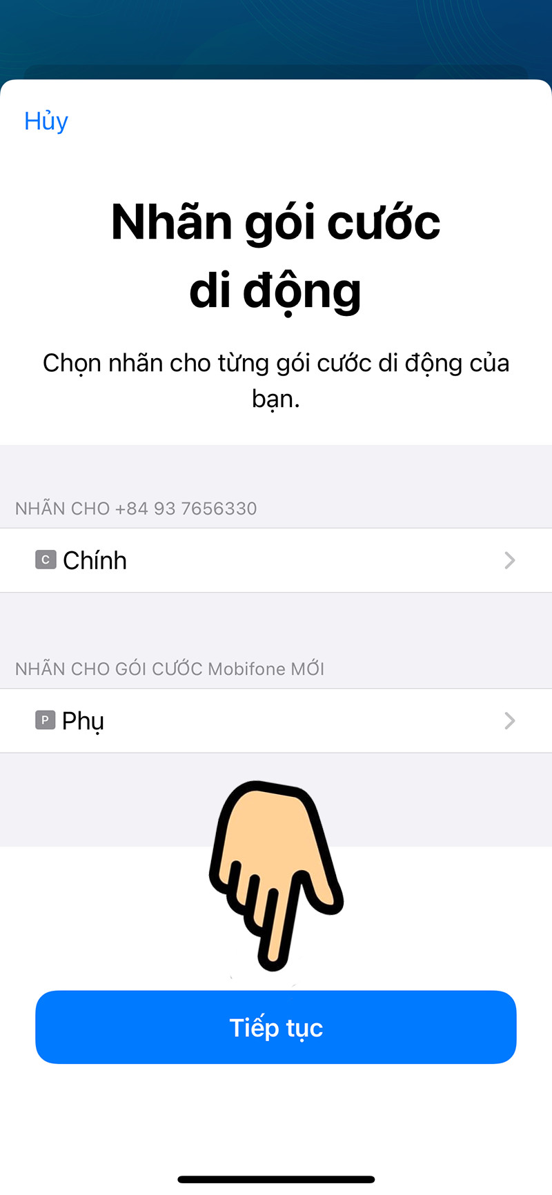 Màn hình tiếp tục cài đặt eSIM MobiFone trên điện thoại