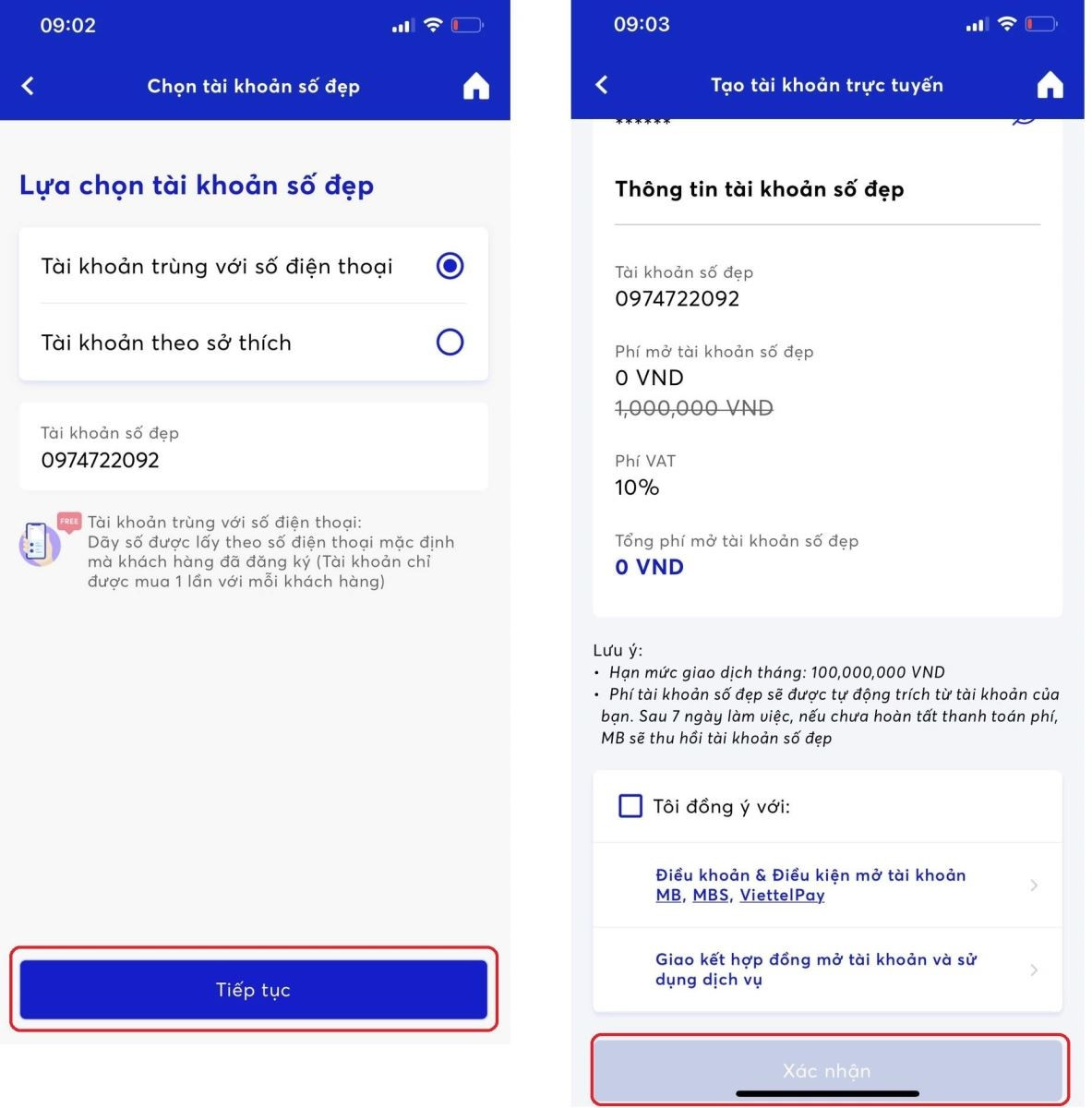 Kiểm tra lại toàn bộ thông tin cá nhân đã cung cấp và điền thêm các chi tiết bổ sung như tên đăng nhập hoặc địa chỉ email. Sau đó, bạn sẽ thiết lập mã PIN (Mã OTP) để sử dụng trong các giao dịch sau này. Cuối cùng, chọn loại tài khoản phù hợp với nhu cầu của bạn, có thể là tài khoản số đẹp hoặc tài khoản trùng số điện thoại, rồi hoàn tất các bước còn lại để kích hoạt tài khoản. Một mã OTP cuối cùng sẽ được gửi đến bạn để xác nhận và hoàn tất quá trình đăng ký.