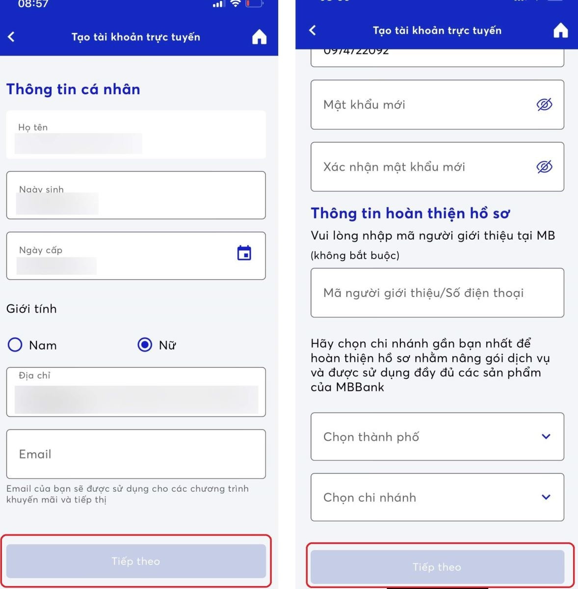 Kiểm tra và bổ sung thông tin cá nhân để đăng ký tài khoản MB Bank