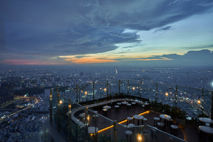 Bar Blank Lounge tại Landmark 81 tọa lạc trên tầng 75 – 76, là quán Bar cao nhất khu vực Đông Nam Á với độ cao hơn 360 mét. Nơi đây sở hữu không gian sang trọng với thiết kế bốn mặt kính cường lực trong suốt, cho phép du khách ngắm nhìn toàn cảnh thành phố bên dưới từ độ cao ấn tượng. Blank Lounge mang đến một không gian lý tưởng để thư giãn và tận hưởng vẻ đẹp của Sài Gòn về đêm.