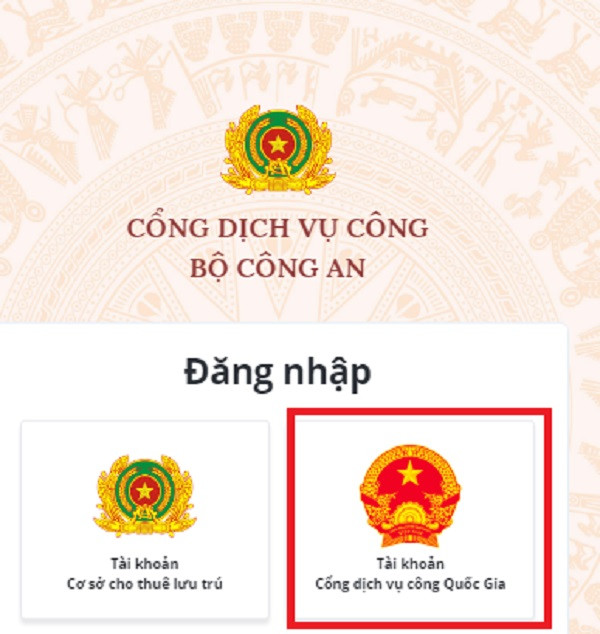 - Chọn loại tài khoản bạn muốn đăng nhập (thường là tài khoản cấp bởi Cổng Dịch vụ công Quốc gia hoặc tài khoản cấp bởi Bưu điện Việt Nam).