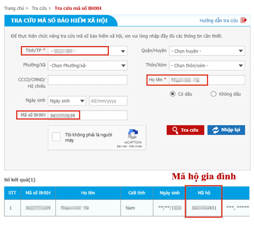 Nếu bạn đã từng tham gia BHXH và có mã số BHXH cá nhân, đây là phương pháp nhanh nhất để tìm mã số hộ gia đình. Bạn chỉ cần điền: