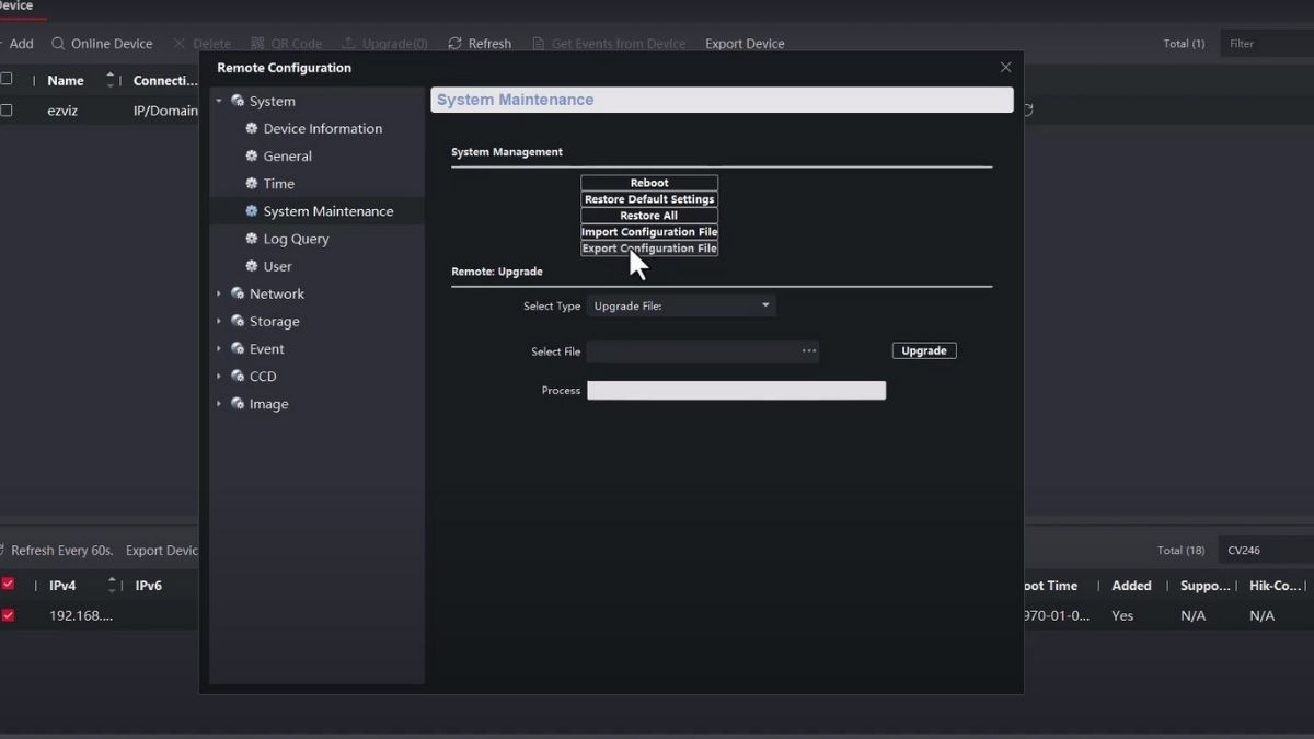 Cần truy cập vào mục System MaintenanceChọn mục System Maintenance để xuất tệp cấu hình.