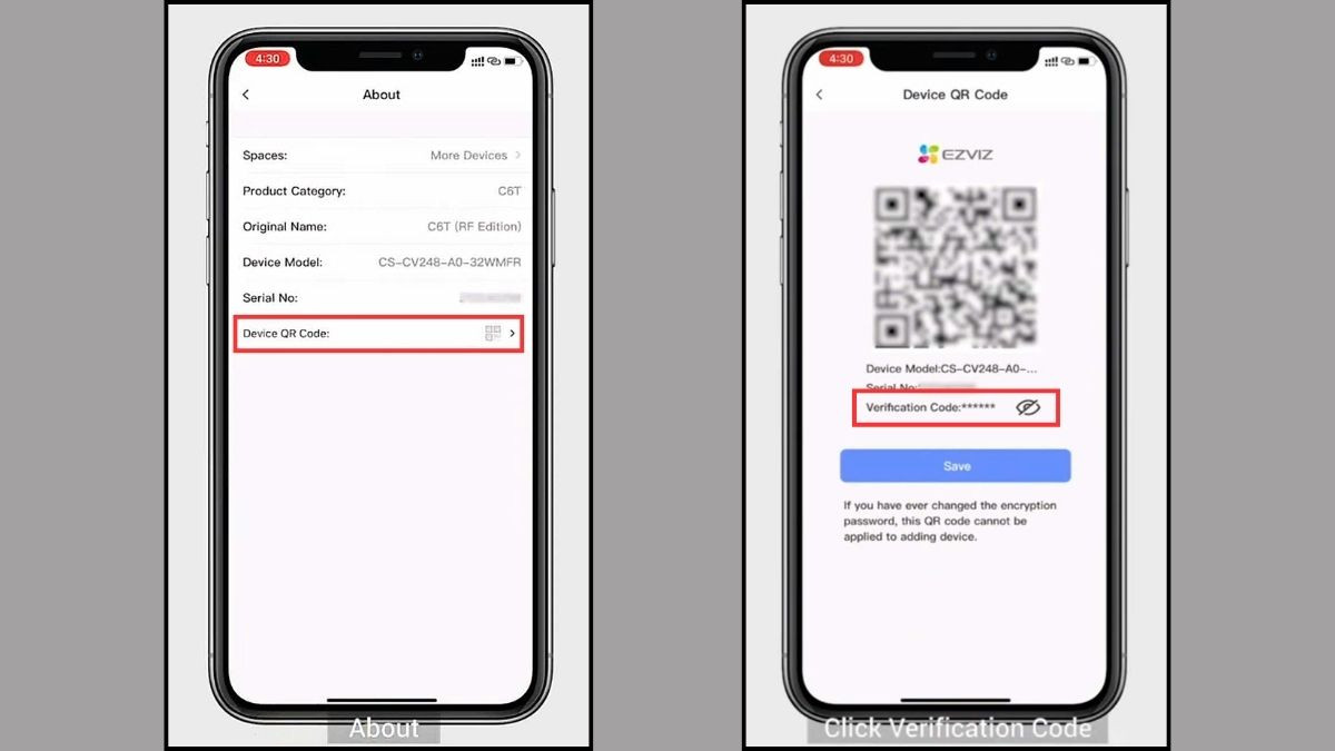 Mã xác minh của thiết bị sẽ được hiển thị tại mục Verification CodeTìm mã xác minh trong phần thông tin thiết bị của camera Ezviz.