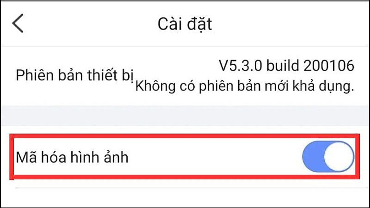 - Bước 3: Chuyển công tắc để tắt tính năng “Mã hóa hình ảnh”. Ứng dụng có thể yêu cầu bạn xác nhận hành động này và cảnh báo về việc giảm bảo mật. Sau khi tắt, bạn sẽ không cần nhập mật khẩu mã hóa khi xem video từ camera này nữa.