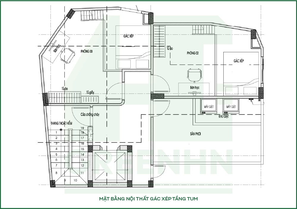 Mặt bằng kiến trúc tầng tum anh Phú – Cầu Giấy
