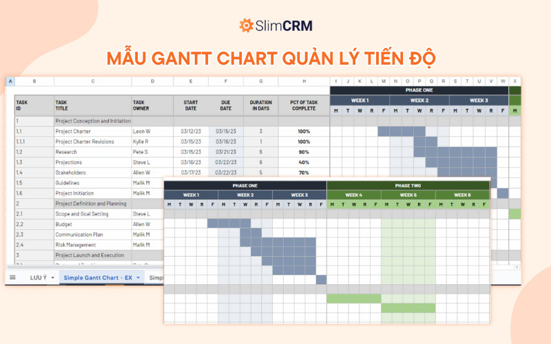 Biểu đồ Gantt thể hiện tiến độ dự án