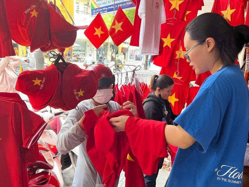 Người tiêu dùng thử áo cờ đỏ sao vàng trực tiếp tại cửa hàng