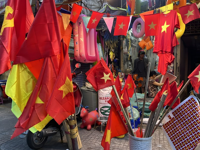 Những con phố cổ Hà Nội bày bán áo cờ đỏ sao vàng rực rỡ
