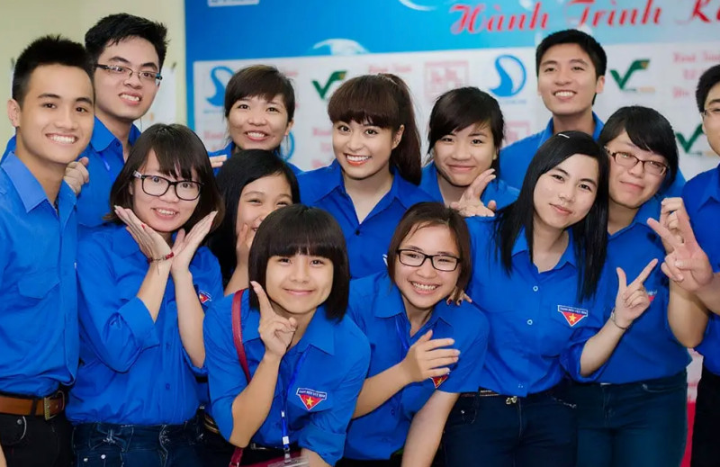 Những người trẻ mặc áo đoàn thanh niên tham gia hoạt động xã hội