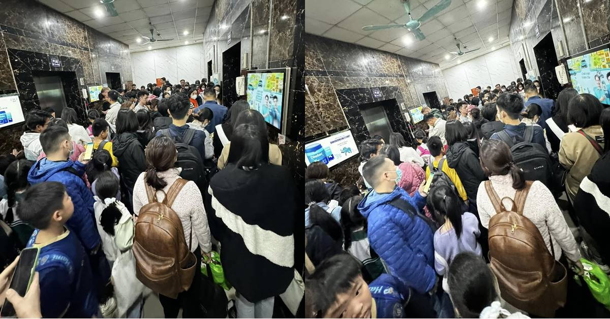 Cư dân chung cư CT12A Kim Văn Kim Lũ ùn tắc tại sảnh thang máy vào giờ cao điểm
