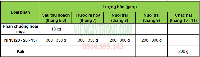Biểu đồ minh họa lượng phân bón chi tiết cho cây tiêu Srilanka theo từng giai đoạn phát triển, hỗ trợ nông dân chăm sóc hiệu quả