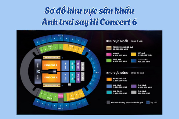 Để giúp khán giả hình dung rõ hơn về bố cục sự kiện, ban tổ chức đã công bố sơ đồ sân khấu và các khu vực khán đài một cách chi tiết. Sơ đồ này cực kỳ hữu ích cho những ai đang cân nhắc mua vé Anh Trai Say Hi ở đâu và chọn vị trí ngồi hoặc đứng phù hợp nhất với trải nghiệm mà mình mong muốn. Các khu vực được chia rõ ràng, từ những vị trí sát sân khấu với tầm nhìn bao quát cho đến những khu vực khán đài ở xa hơn, mỗi nơi đều mang lại một góc nhìn và cảm nhận riêng biệt về đêm diễn, giúp khán giả có thể lựa chọn dựa trên sở thích cá nhân và ngân sách.
